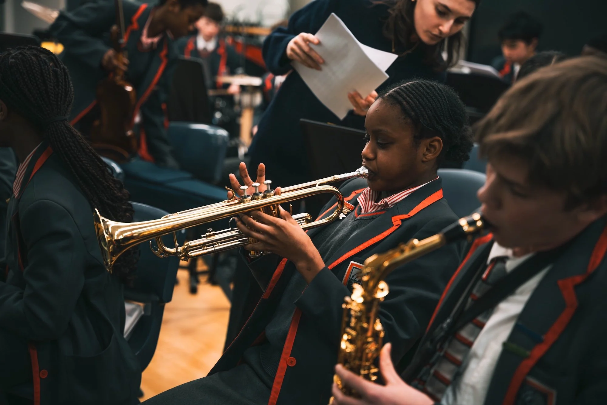 Our co-curricular programme is extensive and inclusive. Students can participate in Orchestra, Choir, Band, ensembles and regular Music Showcases, with opportunities to perform at concerts, community events and Mossbourne Federation performances. Peripatetic instrumental lessons provide specialist tuition across a range of instruments, ensuring technical excellence and progression.